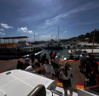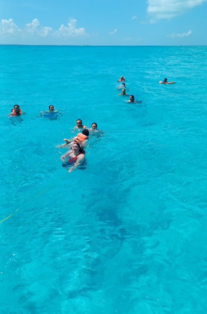 Kayaks, DJ, camastros ,buffet y visita en playa Norte de Isla Mujeres donde disfrutaras de tiempo libre para hacer compras o nadar en la decima playa mas hermosa del mundo o nadar en las playas cerca de los muelles observando la vida diaria de los nativos asi como actividades comerciales